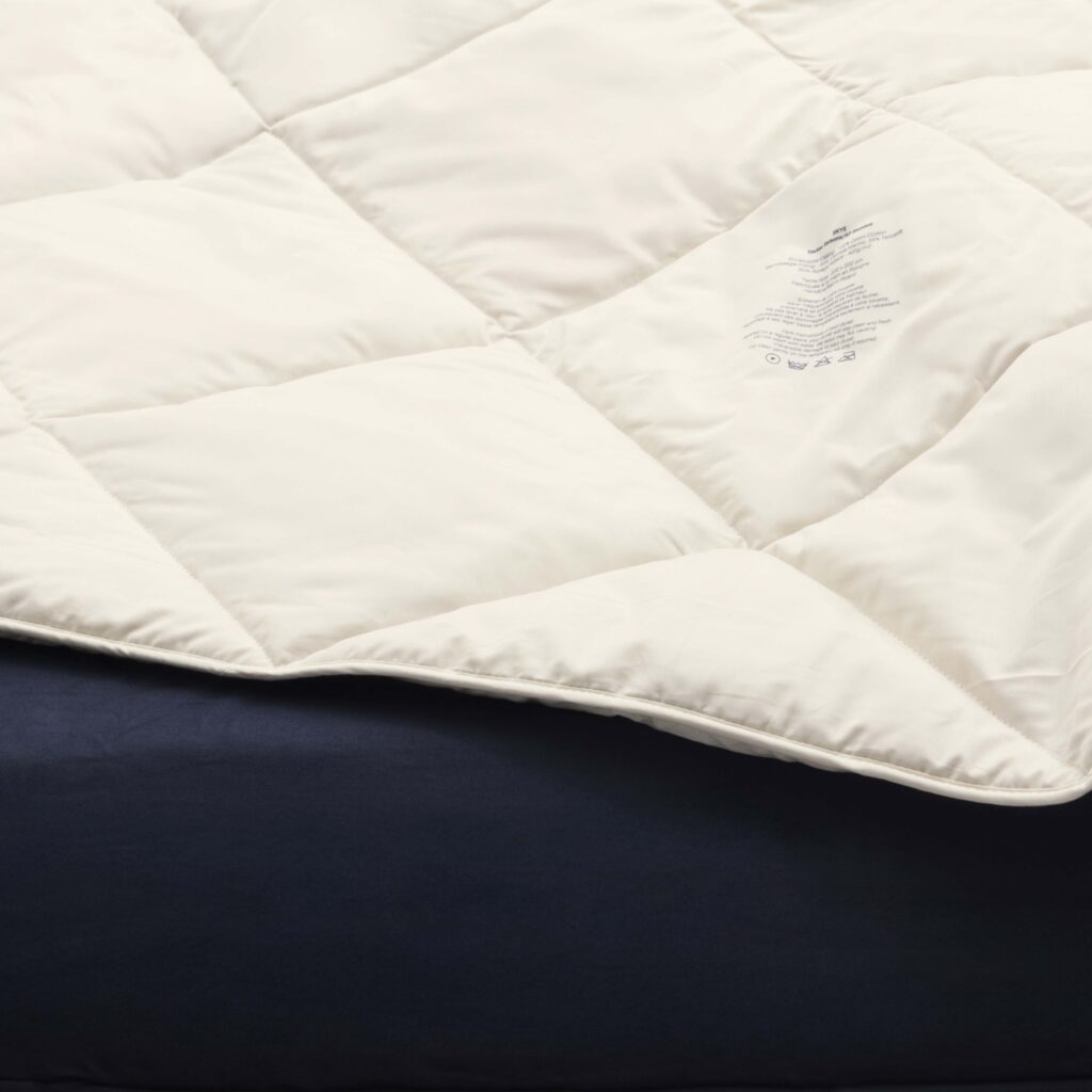 Nous espérons pouvoir bientôt vous fournir le linge de lit le plus adapté possible à nos produits, en attendant la règle à respecter est simple : afin de préserver les excellentes vertus de la laine d’alpaga il faudra utiliser une housse de couette naturelle. Le satin ou la percale de coton conviennent parfaitement, vous pouvez également utiliser des matériaux plus chauds comme la soie en hiver, et plus légers comme le lin pour l’été.
